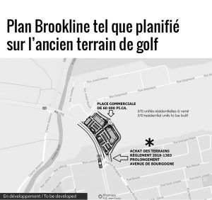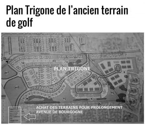 Cette acquisition par la Ville de Chambly de près de 1 000 000 M$ ouvrira la porte au projet d’une place commerciale de 60 000 pieds carrés qui utilise comme justification, la construction de 570 logements dans le secteur du golf. Ce qui entraînera la destruction définitive du milieu naturel de l’ancien golf et la mise en valeur d’un parc nature dans notre ville (voir les plans ci-dessous).