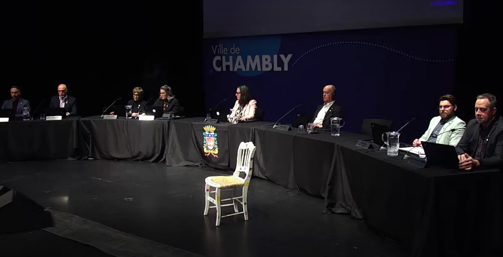 C’est à ce moment que la mairesse a affirmé n’avoir jamais dit qu’il y aurait un processus d’approbation référendaire. Les personnes présentes dans la salle venaient tout juste d’apprendre, lors de la deuxième période de questions, qu’il n’y aurait finalement pas de processus d’approbation référendaire.